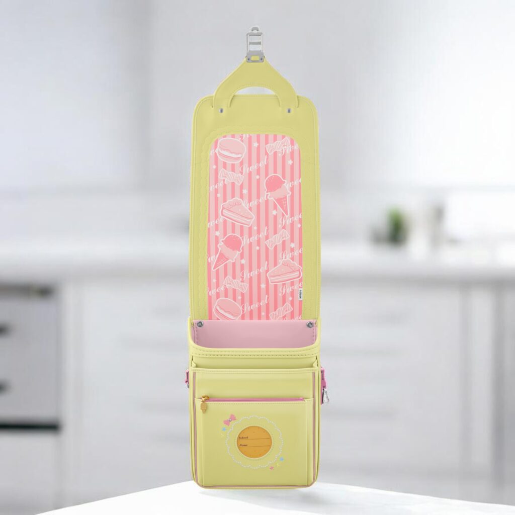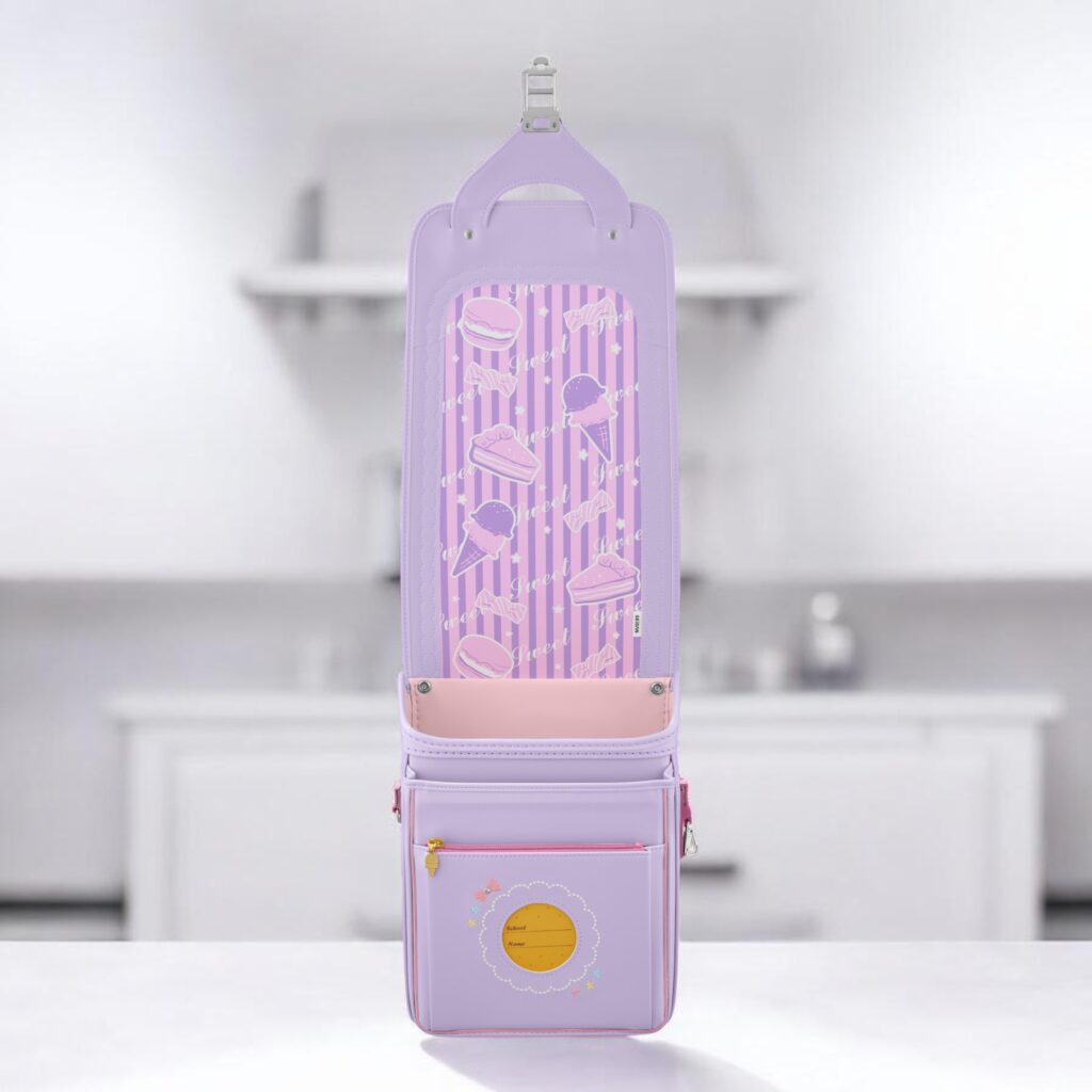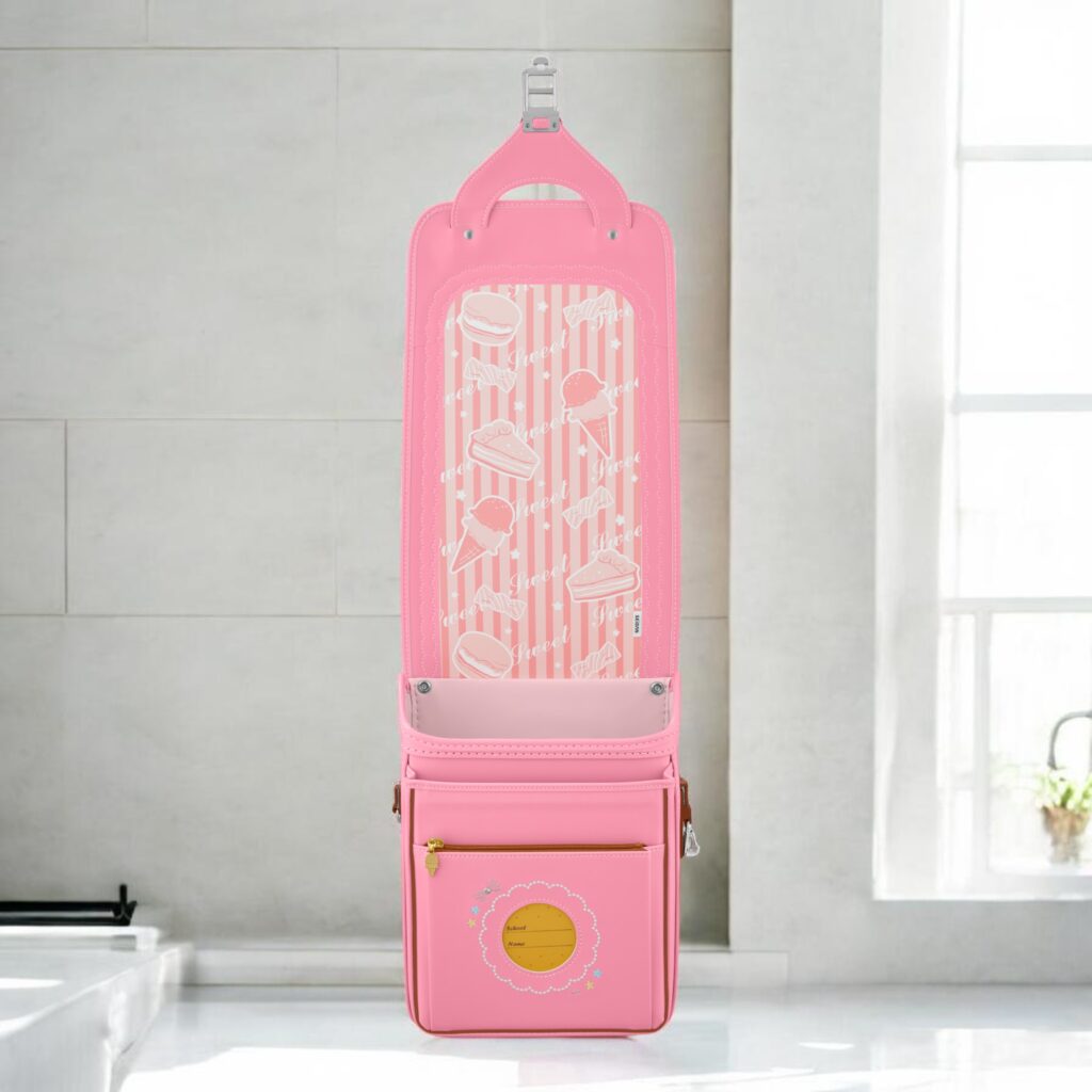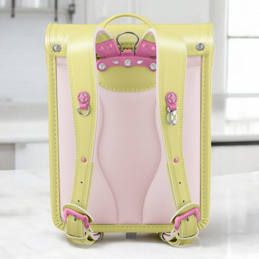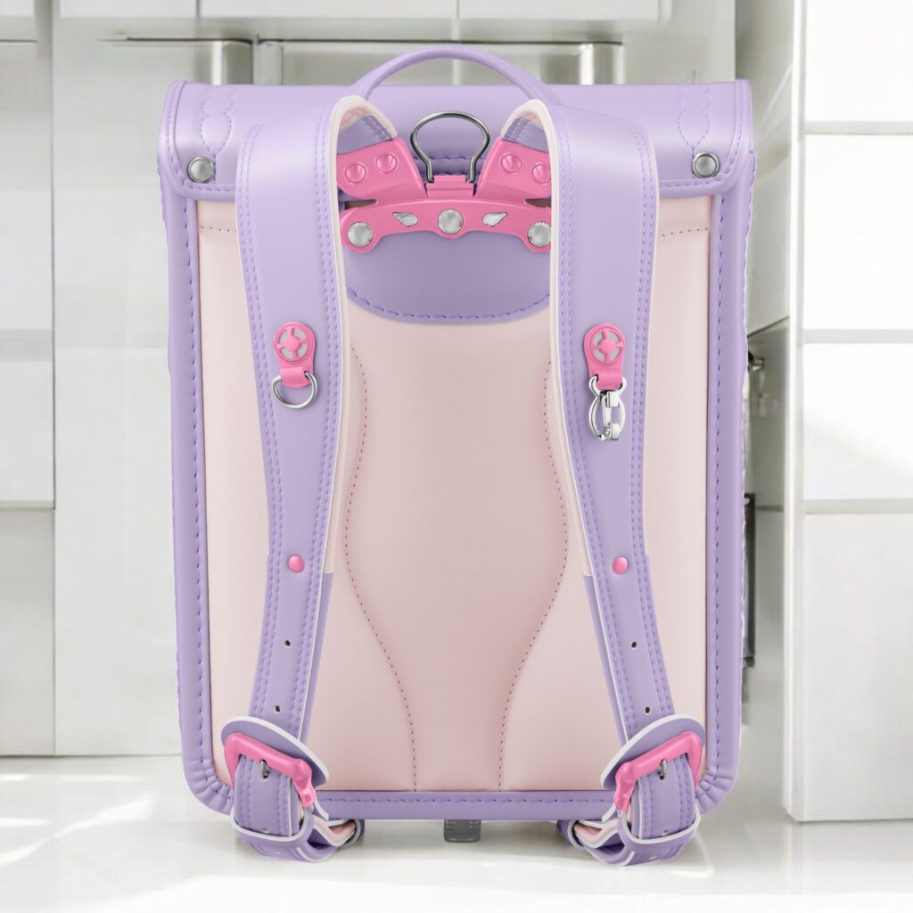 「丈夫で軽量・コンパクト」を兼ね備えた特許構造のタフコンパクト型モデル。実はコンパクトなのに大容量メイン収容13.5cm+横幅25.0cm仕様。通常のランドセルよりも大きく横幅収容が広いため横置きで筆箱を収容可能。見た目スリムでも国内最大容量なのも魅力。また背面構造とベルト構成が他の天使のはねと異なり「専用設計」。負担も少なく併せやすく大容量。現代の学校事情を考慮したセイバン・天使のはね(R)らしい新設計モデルです。