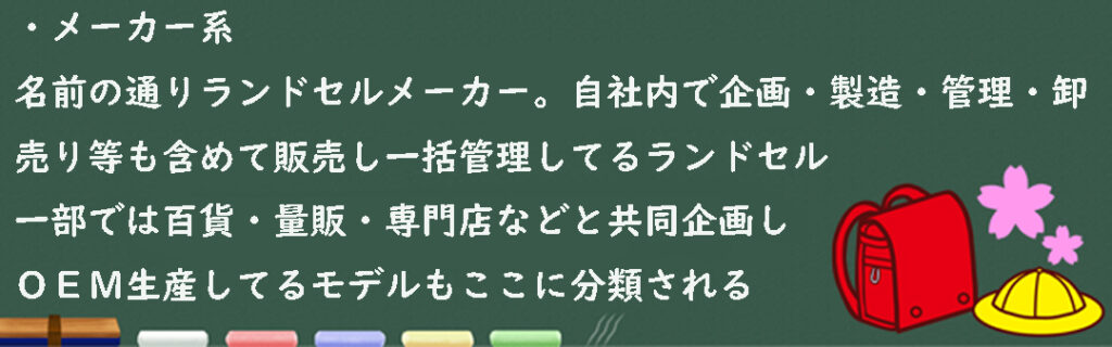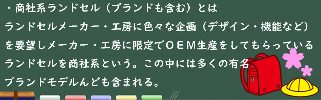 4)商社系(商社並びに百貨店などが企画しメーカーに製造委託してるランドセル)