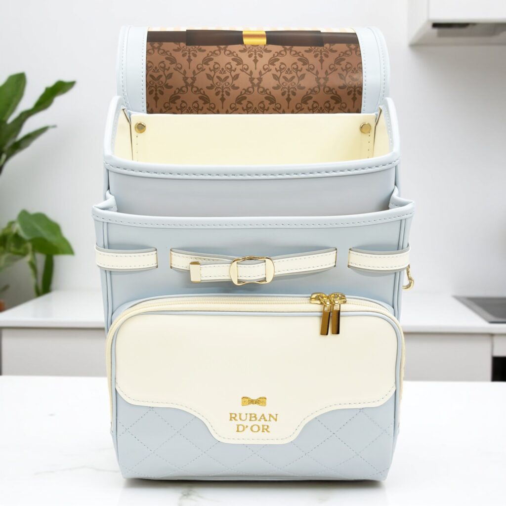 阿川ランドセル2027年度モデル「リュバンドール」は、女の子に大人気のキュート&ラグジュアリーな一品!ウイングセカン×タフボディで背負い心地抜群、V-LOPやらくらくベルトで肩への負担を軽減。キューブ型の大容量も魅力です。贅沢な可愛さと本物の工房クオリティを66,000円で実現!6年間を優雅に彩る逸品ですよ♪