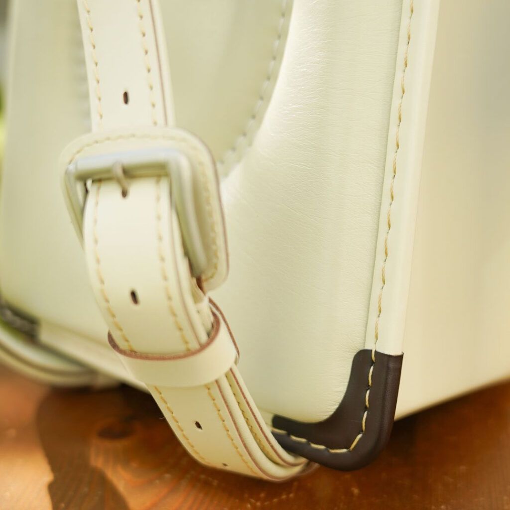 牛革プレスシュリンク加工で丈夫で撥水性も安心。ベテラン職人がシンプルだからこそ1針1針を丁寧に縫込み作り上げられた本モデルは、光や風のようにふわっと心地よく身体にフィット。シンプルだからこそ、ナスカン施工部に可愛らしいリーフ&ティアドロップなどのモチーフでさり気ない演出。牛革なのに軽量1280g&容量アップの12.5cm仕様。皆さんが求めている工房ランドセルとはこういうモデルではないかというポイントを意識したランドセル工房生田の新作モデル「なごみ」