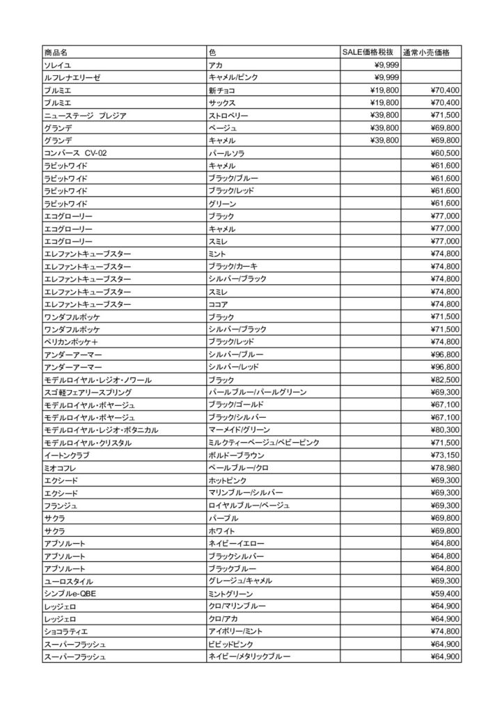 ランドセル専門店:おりじなるぼっくす:アウトレット商品一覧表公開【特価品リスト】