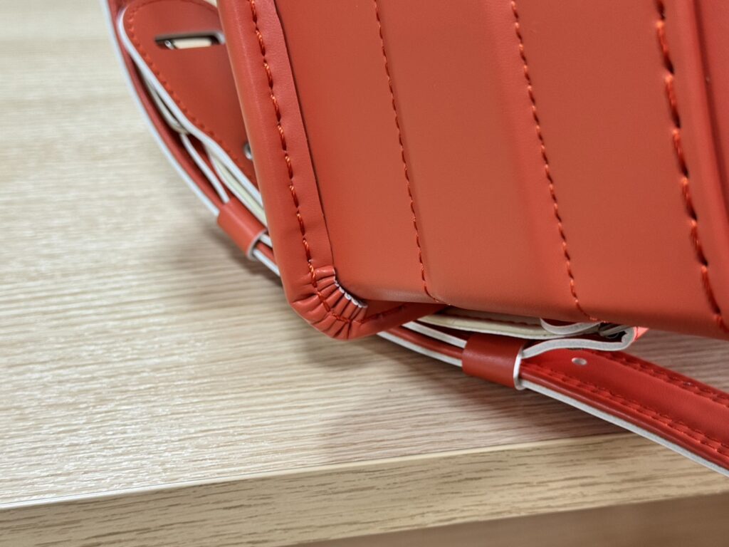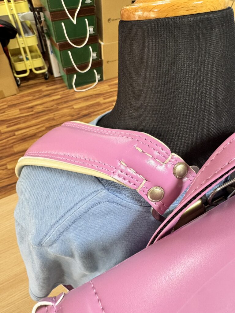 良い意味で工房の造りこみを活かしつつメーカー系の合理的な部分を融合した工房という感じの樋口鞄工房。当店で言うと阿川ランドセルとそのあたりの考え方は非常に似てますね。シンプルな中にもきらりと光る縫製力とメーカー系のシンプルな縫製をバランスよく配合したランドセルという印象。また良い意味でメーカー系というのはBOX全体の強度。インナーフレーム構造ですが十分な強度も出てます。生地で持たせるのではなくこの辺りは長年の経験からくる部分ですが非常にバランスの良いランドセルとも言えますね。