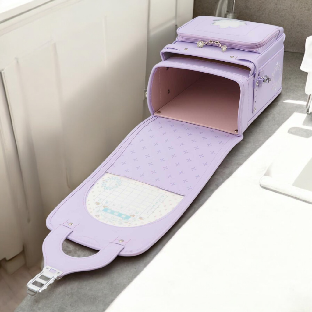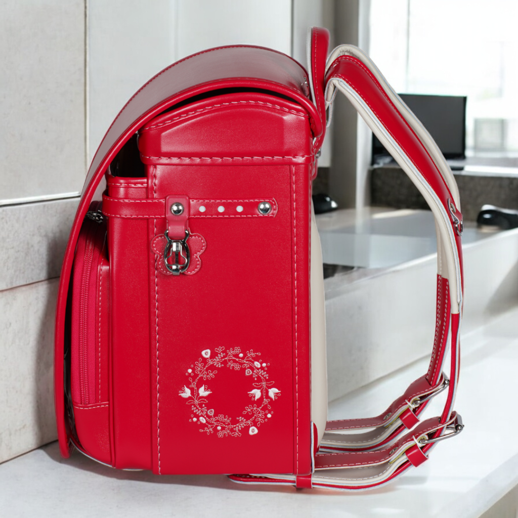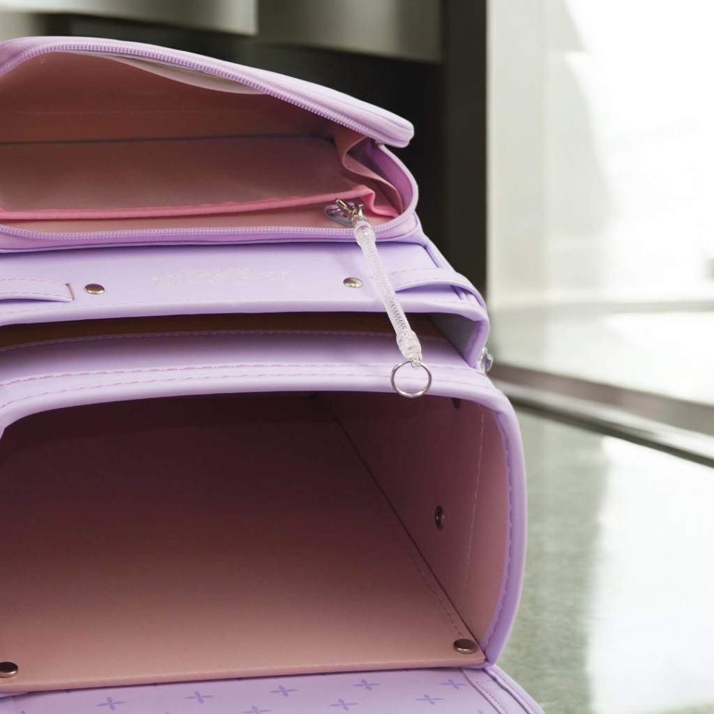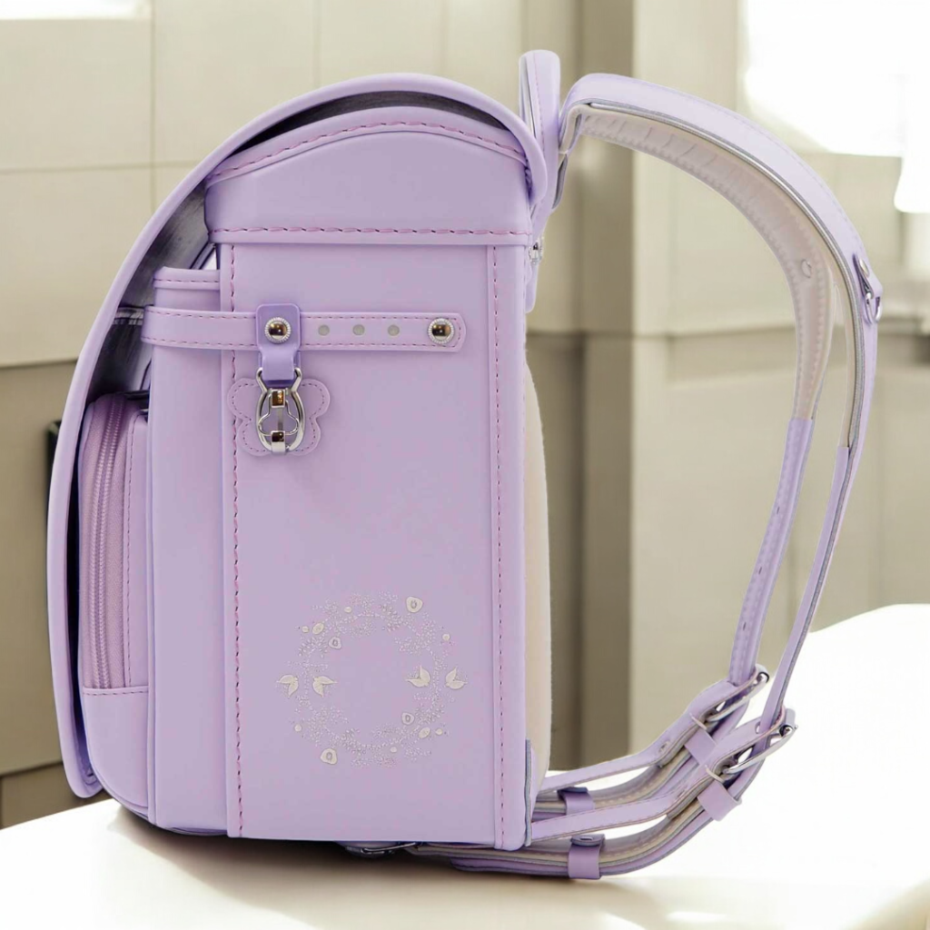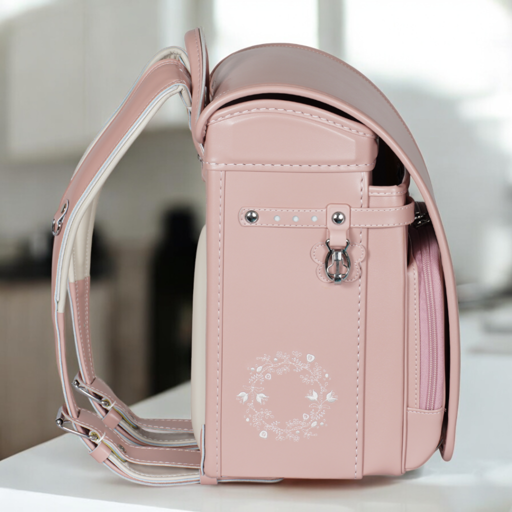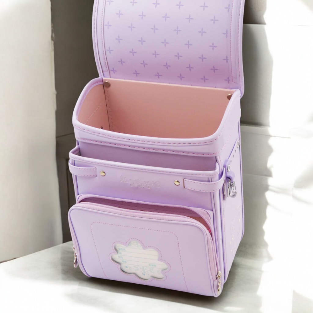 榮伸女児モデルのベストセラーモデルがマイナーチェンジ。より背負いやすくをテーマに新型ベル(ミラクルベルト)+新ベルトクッション(らくふわベルト)を搭載。やわらかな雰囲気の中に刺繍とキラキラパーツがさり気ないアクセントになっており6年間飽きのないデザインで安定人気のランドセル