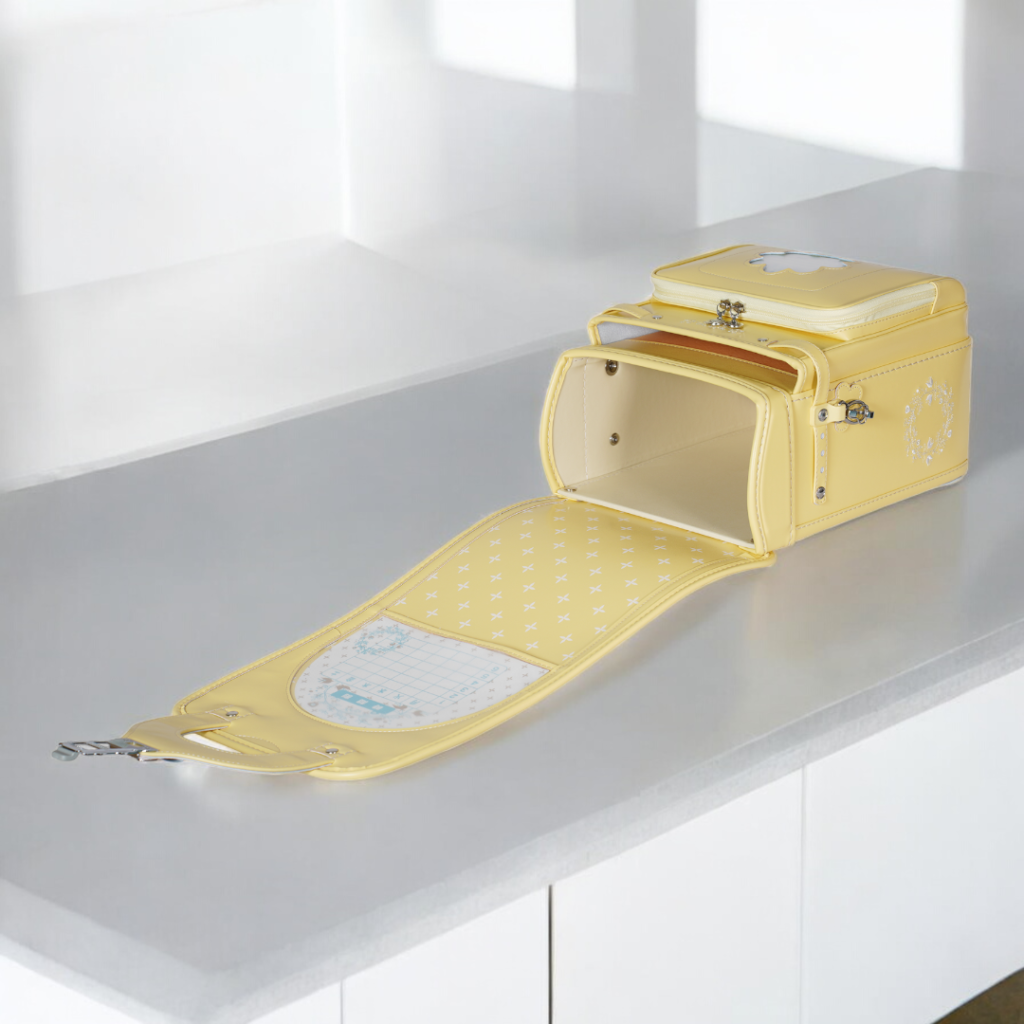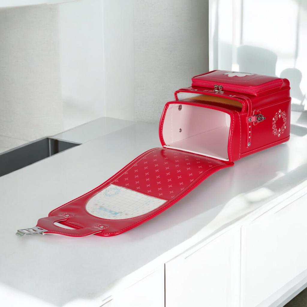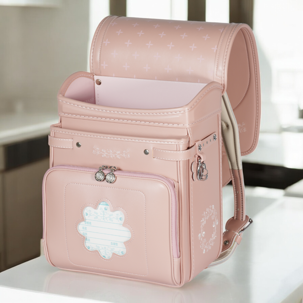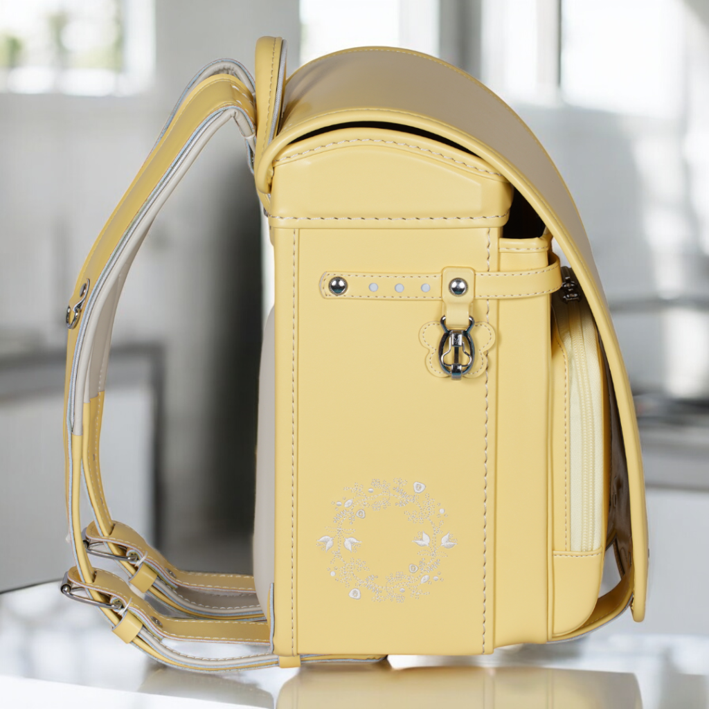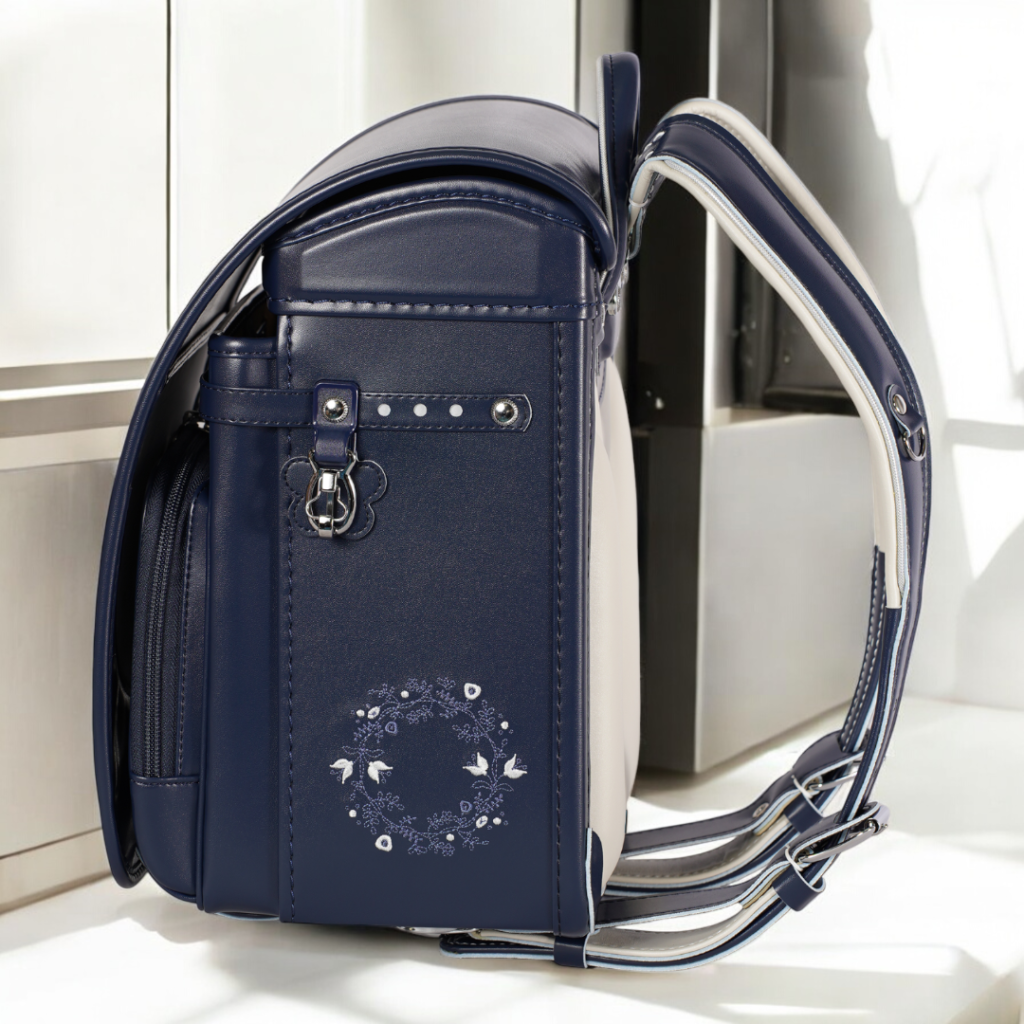 榮伸女児モデルのベストセラーモデルがマイナーチェンジ。より背負いやすくをテーマに新型ベル(ミラクルベルト)+新ベルトクッション(らくふわベルト)を搭載。やわらかな雰囲気の中に刺繍とキラキラパーツがさり気ないアクセントになっており6年間飽きのないデザインで安定人気のランドセル