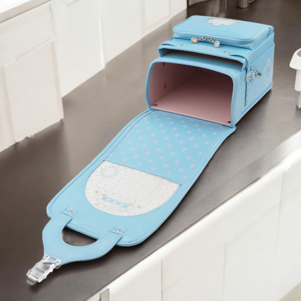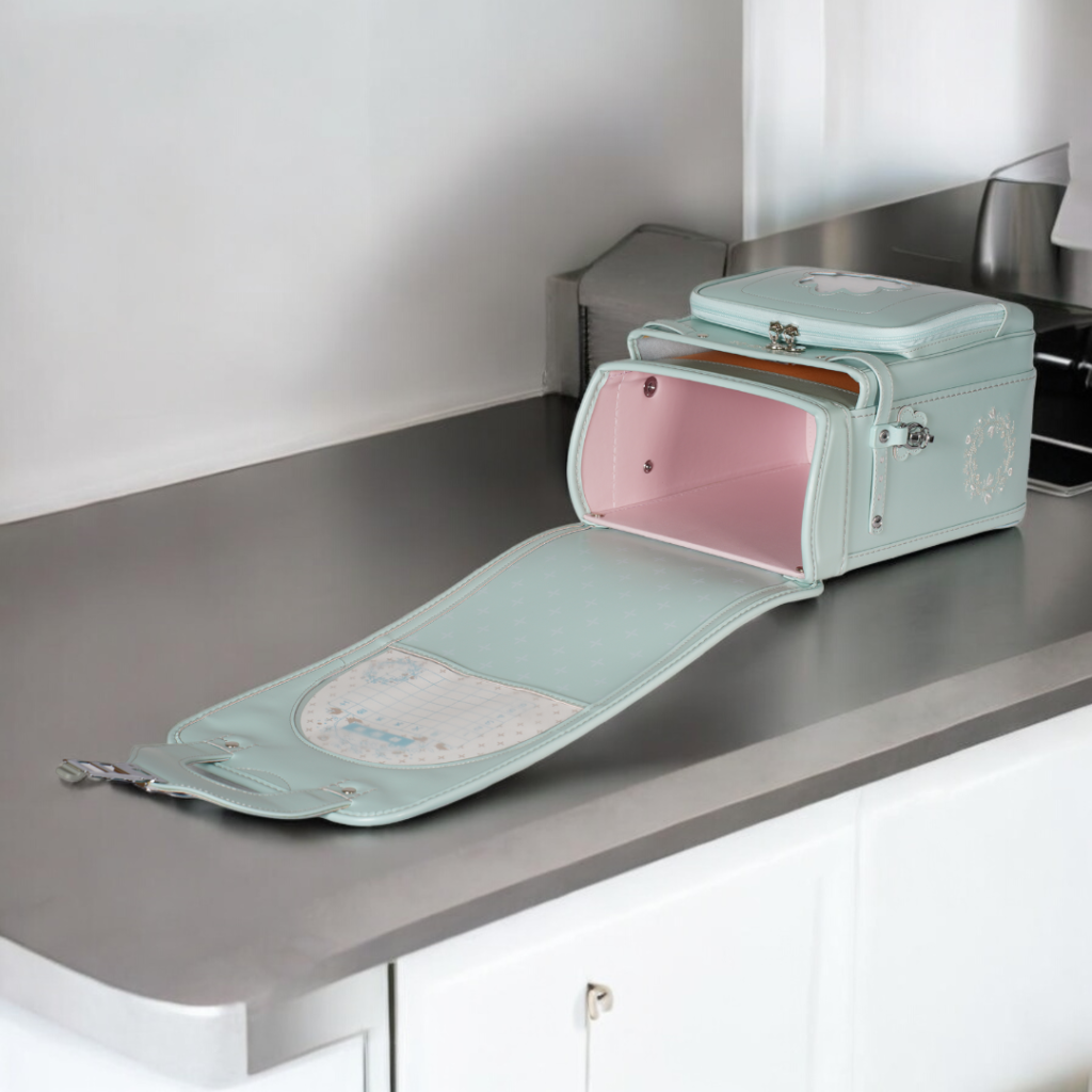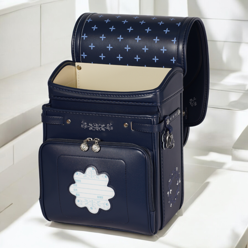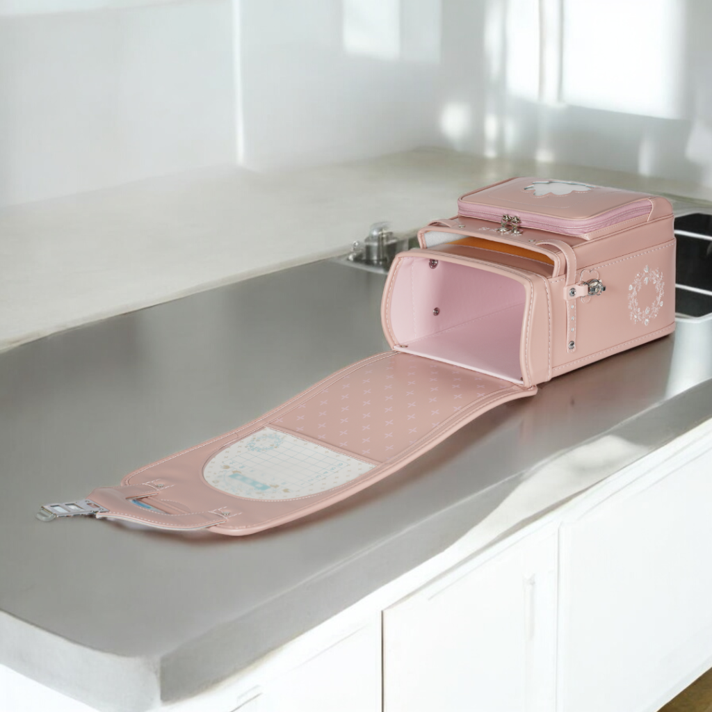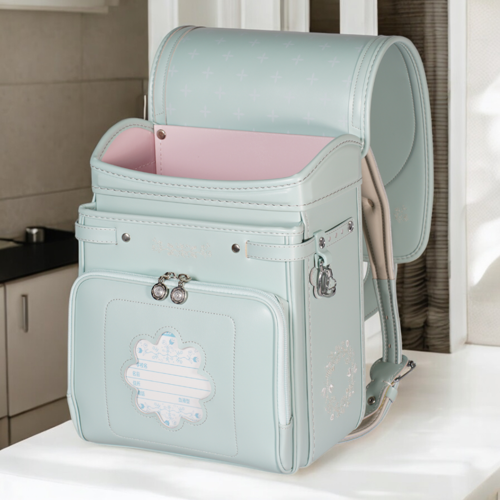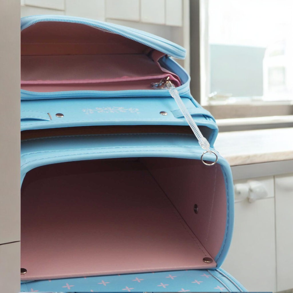 榮伸女児モデルのベストセラーモデルがマイナーチェンジ。より背負いやすくをテーマに新型ベル(ミラクルベルト)+新ベルトクッション(らくふわベルト)を搭載。やわらかな雰囲気の中に刺繍とキラキラパーツがさり気ないアクセントになっており6年間飽きのないデザインで安定人気のランドセル