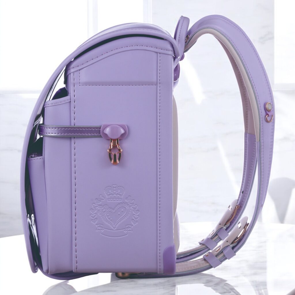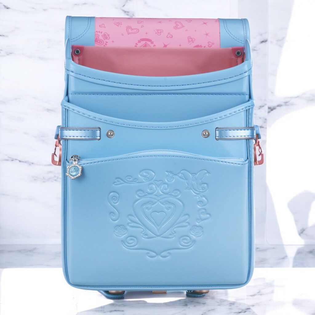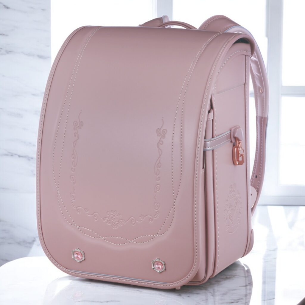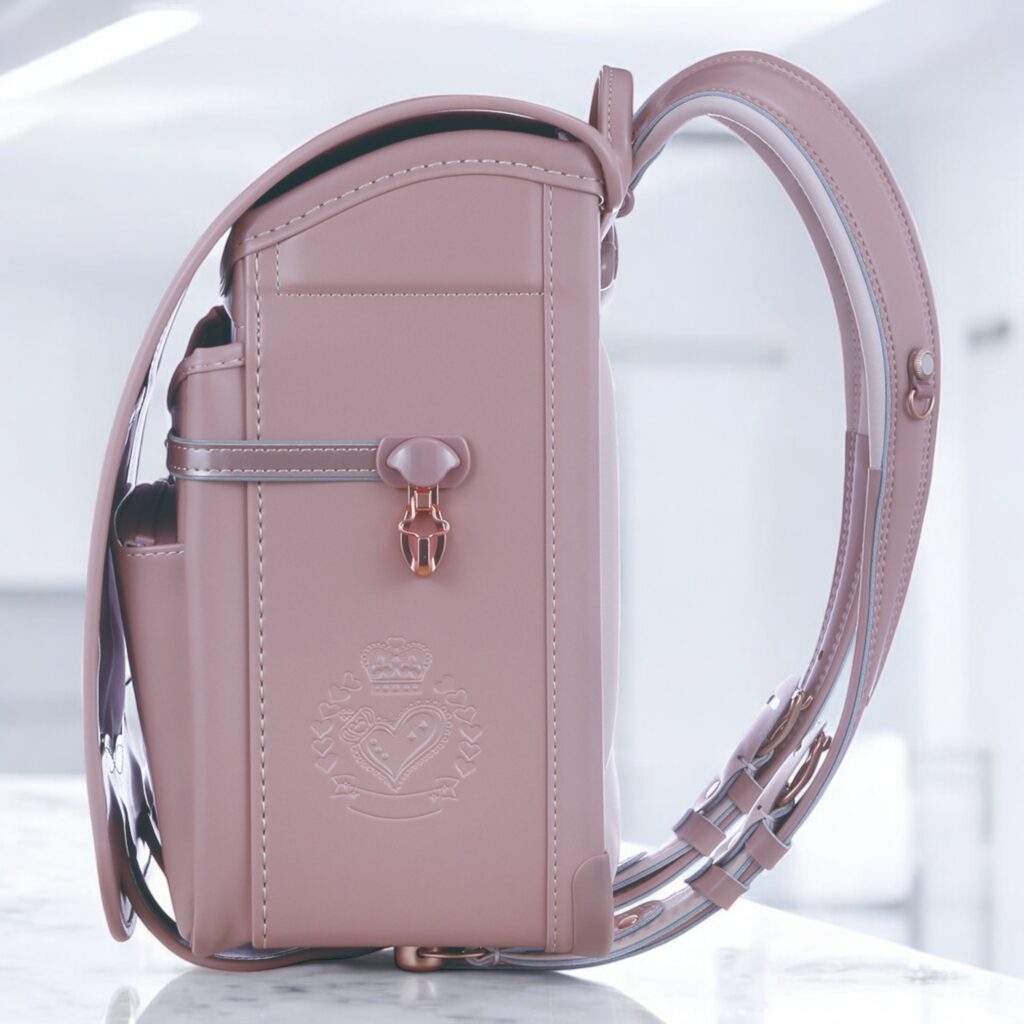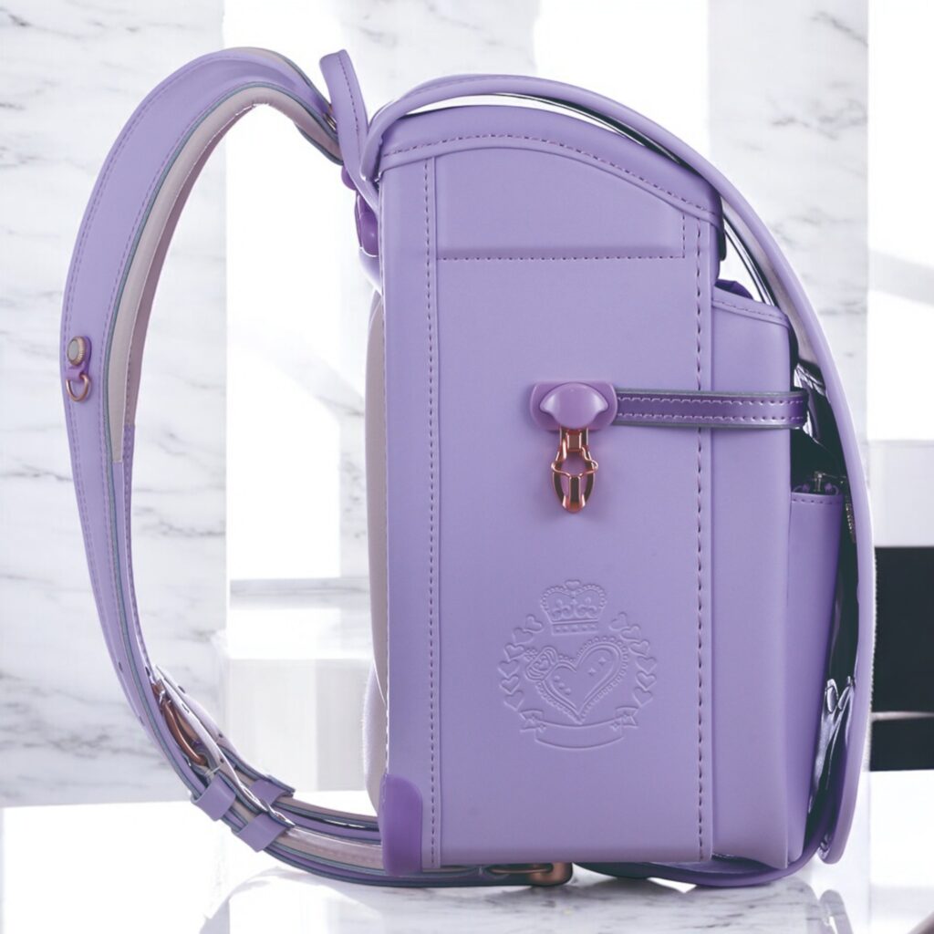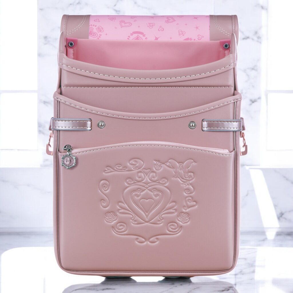 時代は大容量時代に突入。一昨年辺りまでは12cmが主力メインサイズでしたが近年は12.5・13.0・13.5と大容量モデルが増えてきてる時代。そんな時代だから必要なことを見直し軽量・大容量・フィッテングバランスを求めたニューステージ・エアル。刺繍ではなく型押し&ピンクゴールド金具で装飾。2年生以降のランドセルカバーを意識した実用を意識したデザインを採用。内部&反射スタッドを大型の可愛らしいコンパクトをイメージしたクリスタルで装飾。派手すぎない地味過ぎないを意識した軽量&大容量なランドセル。