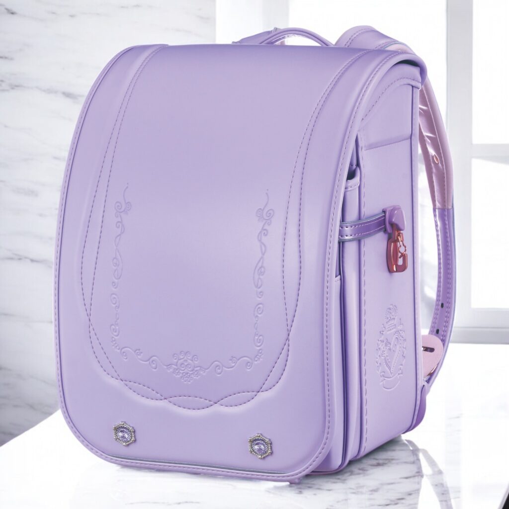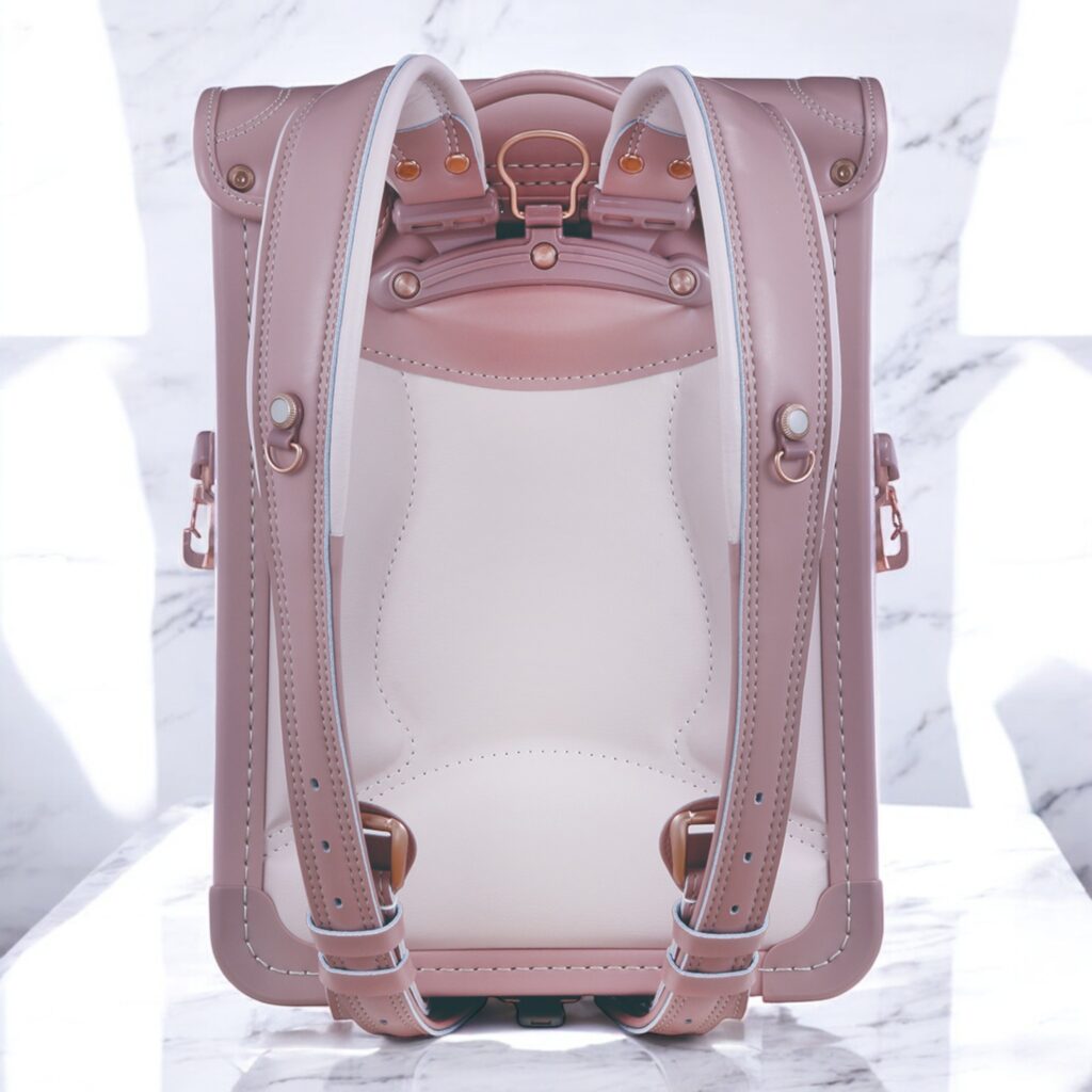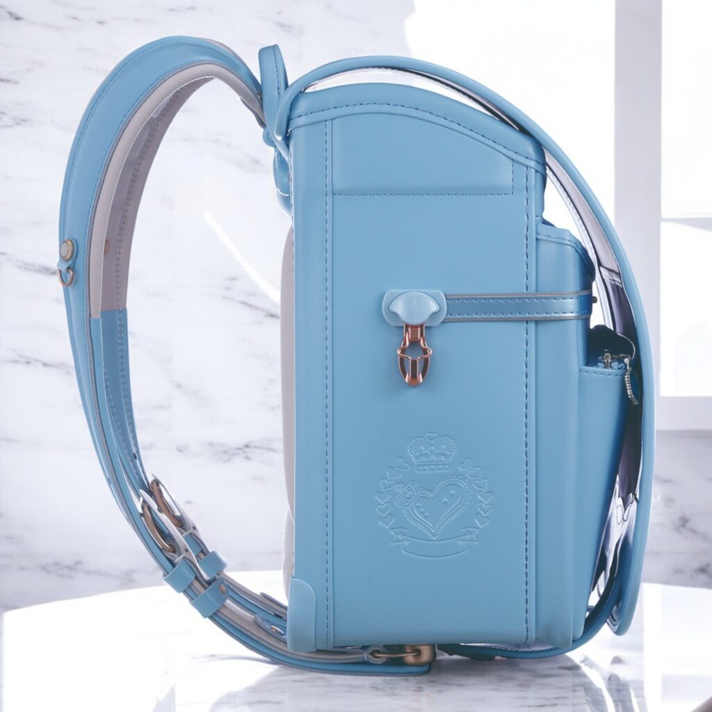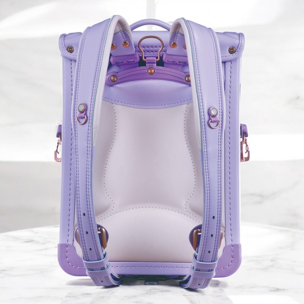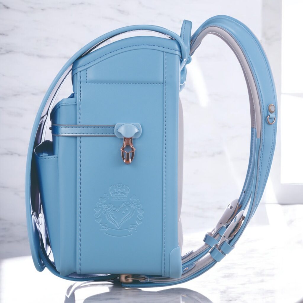時代は大容量時代に突入。一昨年辺りまでは12cmが主力メインサイズでしたが近年は12.5・13.0・13.5と大容量モデルが増えてきてる時代。そんな時代だから必要なことを見直し軽量・大容量・フィッテングバランスを求めたニューステージ・エアル。刺繍ではなく型押し&ピンクゴールド金具で装飾。2年生以降のランドセルカバーを意識した実用を意識したデザインを採用。内部&反射スタッドを大型の可愛らしいコンパクトをイメージしたクリスタルで装飾。派手すぎない地味過ぎないを意識した軽量&大容量なランドセル。