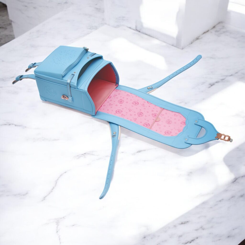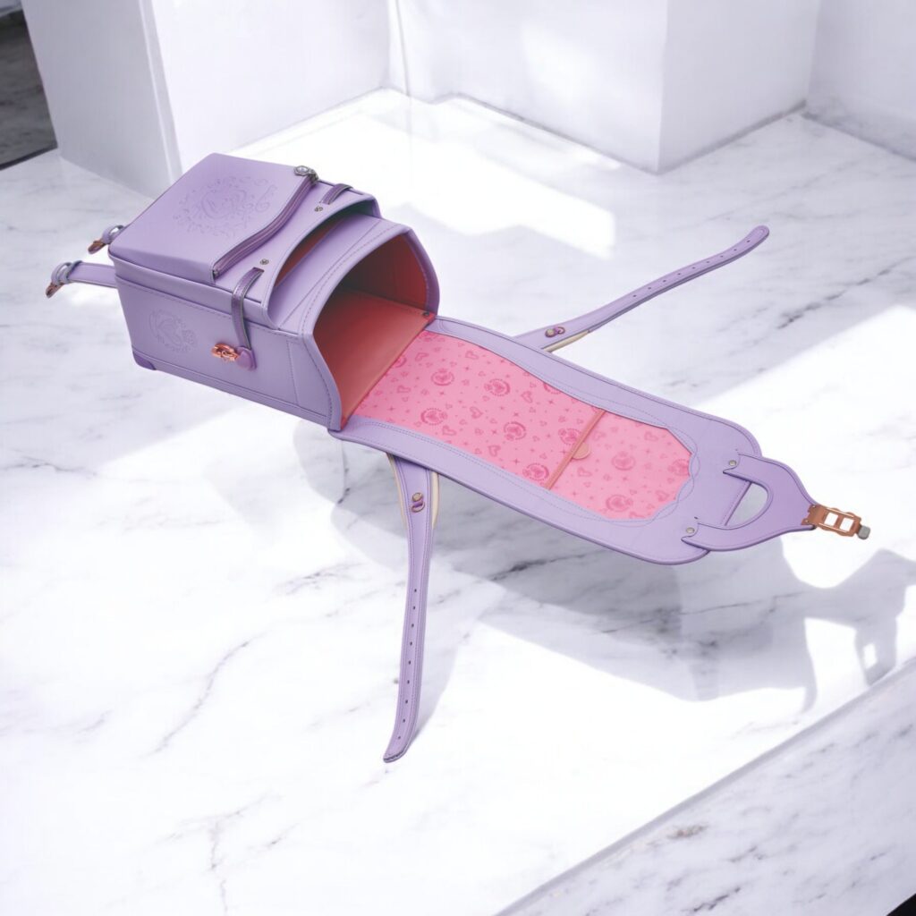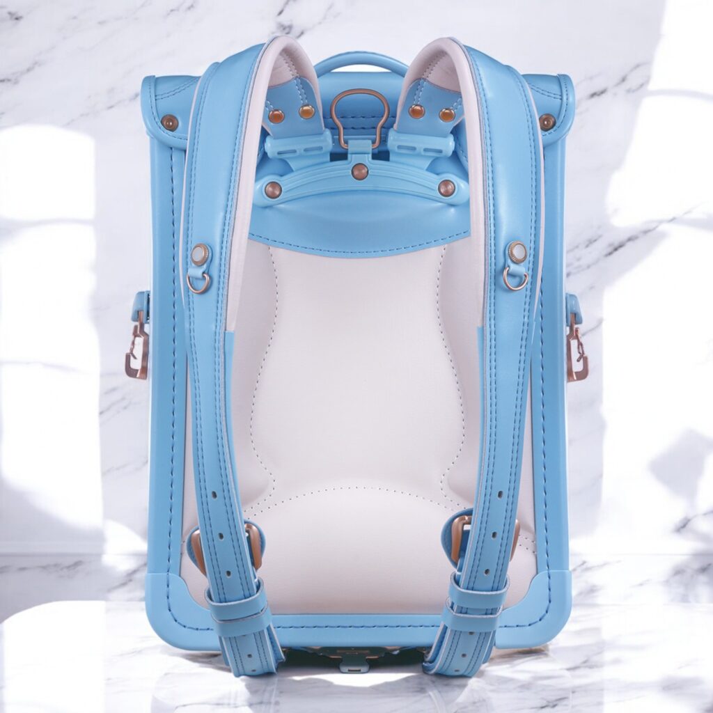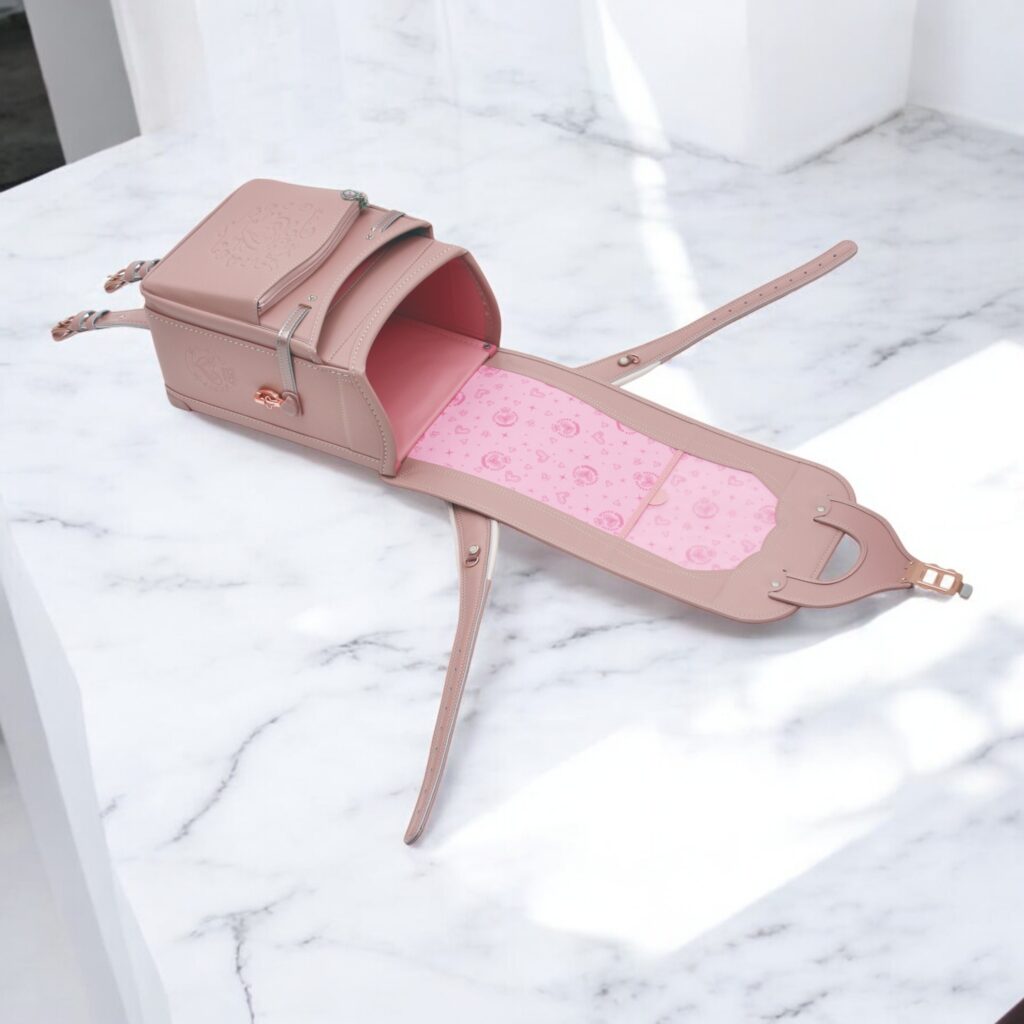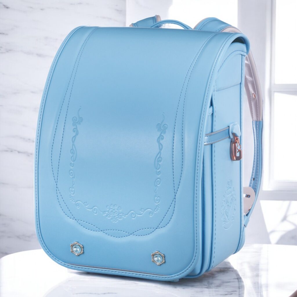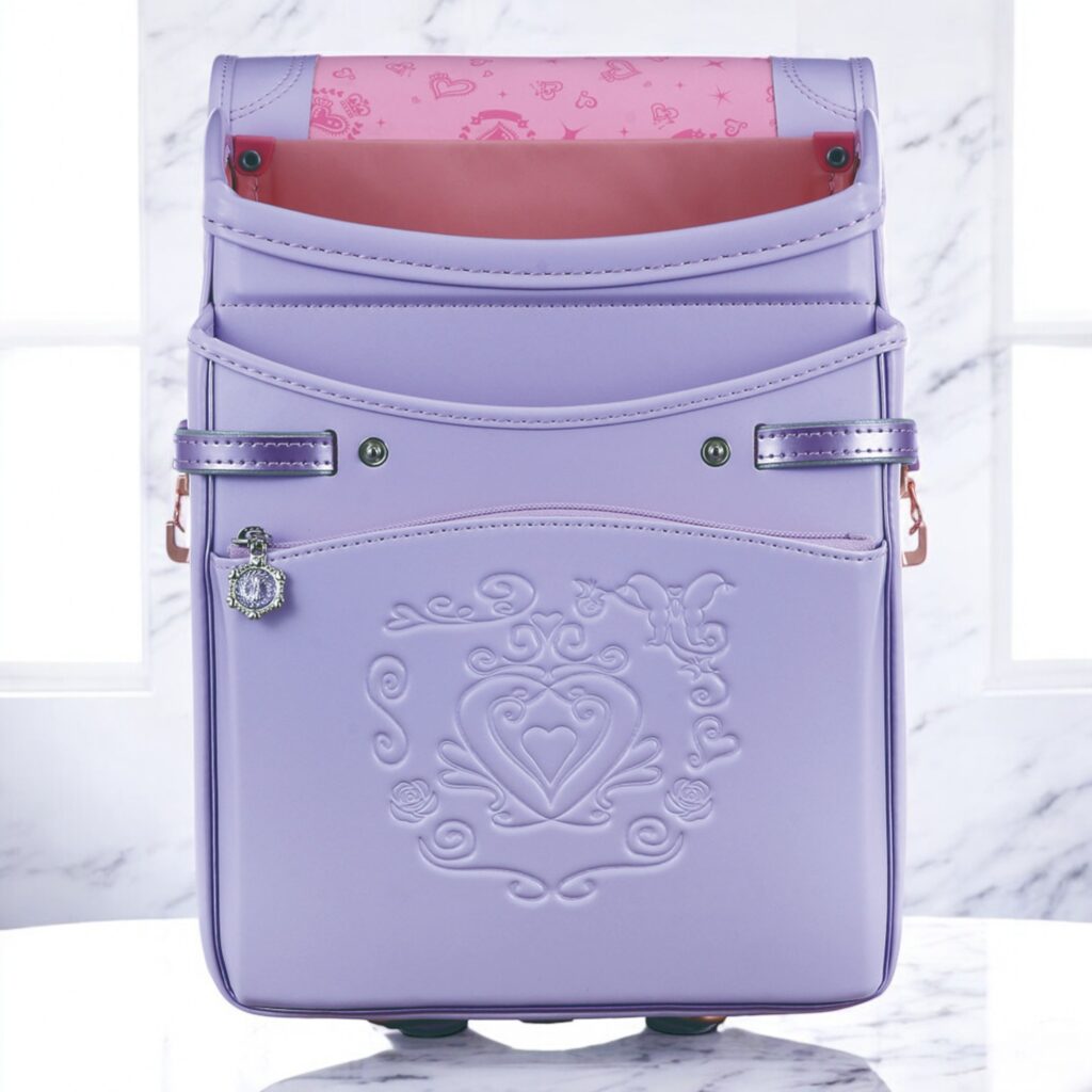 時代は大容量時代に突入。一昨年辺りまでは12cmが主力メインサイズでしたが近年は12.5・13.0・13.5と大容量モデルが増えてきてる時代。そんな時代だから必要なことを見直し軽量・大容量・フィッテングバランスを求めたニューステージ・エアル。刺繍ではなく型押し&ピンクゴールド金具で装飾。2年生以降のランドセルカバーを意識した実用を意識したデザインを採用。内部&反射スタッドを大型の可愛らしいコンパクトをイメージしたクリスタルで装飾。派手すぎない地味過ぎないを意識した軽量&大容量なランドセル。